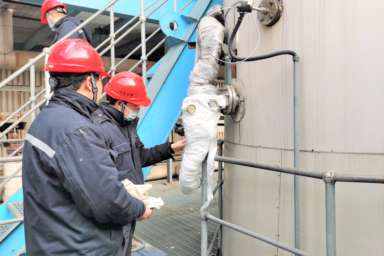 小寒時節(jié),勁風(fēng)朝烈。渭河項(xiàng)目部主動將風(fēng)險關(guān)口前移,開展了“再檢查 、再落實(shí)”專項(xiàng)整治活動。1月6日,項(xiàng)目部組織安技辦專工對#3~#6鍋爐本體設(shè)備迎風(fēng)面、脫硝設(shè)備及主要儀表測點(diǎn)的保溫、伴熱情況進(jìn)行了排查,對熱控各班組防寒過冬措施、物資情況進(jìn)行了檢查補(bǔ)充,協(xié)調(diào)相關(guān)專業(yè)對#3爐汽包取樣設(shè)備、#5爐燃油快關(guān)閥等處進(jìn)行了重點(diǎn)整理,全力保證迎峰過冬期間機(jī)組安全可靠運(yùn)行。