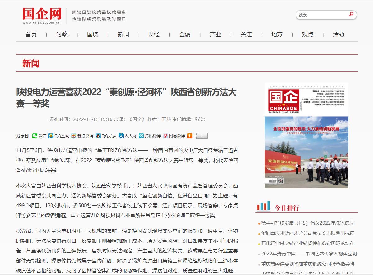 11月5至6日,由陜西省科學(xué)技術(shù)協(xié)會、陜西省科學(xué)技術(shù)廳、陜西省人民政府國有資產(chǎn)監(jiān)督管理委員會、西咸新區(qū)管委會共同主辦,涇河新城管委會承辦的“秦創(chuàng)原?涇河杯”2022年陜西省創(chuàng)新方法大賽決賽在涇河新城產(chǎn)業(yè)園成功舉辦。君創(chuàng)科技材料專業(yè)室所長呂品正“基于 TRIZ 創(chuàng)新方法-一種國內(nèi)首創(chuàng)的火電廠大口徑集箱三通更換方案及應(yīng)用”的創(chuàng)新成果從全省499個項(xiàng)目中脫穎而出,以第13名的好成績斬獲一等獎,將代表陜西征戰(zhàn)全國總決賽。