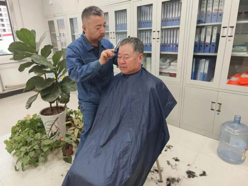 項(xiàng)目部職工曹文華夸道:“步師傅理的發(fā)型清爽又利落,別提有多精神了!”