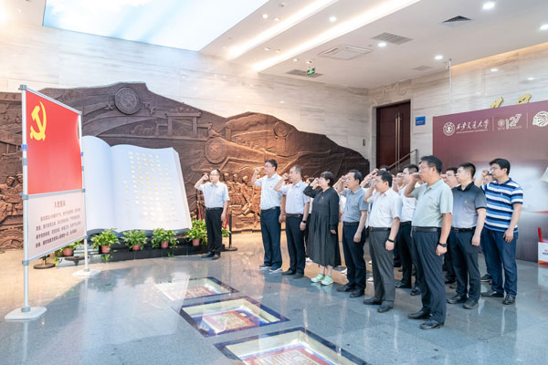 “我志愿加入中國(guó)共產(chǎn)黨,擁護(hù)黨的綱領(lǐng),遵守黨的章程……”鏗鏘有力的宣誓聲響起時(shí),每個(gè)人的內(nèi)心都無比激動(dòng)。在西遷博物館,全體黨員舉起右手面向黨旗莊嚴(yán)宣誓,重溫入黨誓詞,牢記共產(chǎn)黨員的政治責(zé)任和使命擔(dān)當(dāng)。