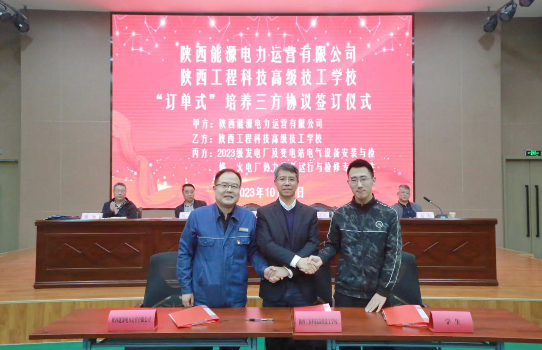10月12日,公司與陜西工程高級(jí)技工學(xué)校舉辦電力運(yùn)營(yíng)《“訂單式培養(yǎng)”三方協(xié)議》簽字儀式。公司黨委書記、董事長(zhǎng)毛冬紅,陜西工程高級(jí)技工學(xué)校黨委負(fù)責(zé)人、校長(zhǎng)李若飛及教職工代表、學(xué)生共計(jì)120余人參加,儀式由陜西工程高級(jí)技工學(xué)校副校長(zhǎng)趙利主持。