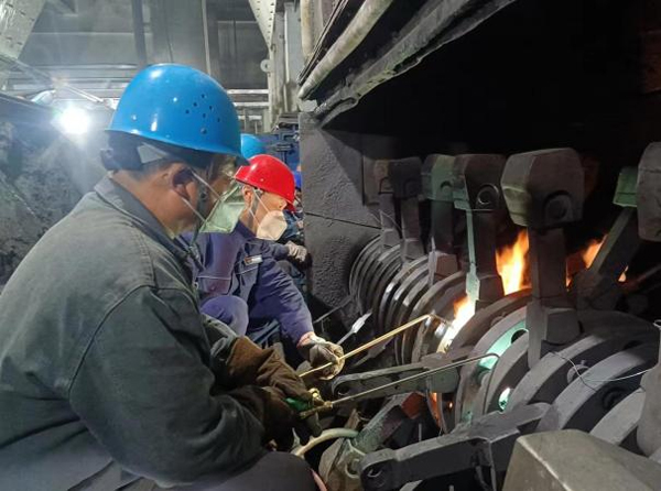 搶修方案確定后,兩組人員接續(xù)戰(zhàn)斗,展開搶修。在轟鳴的機(jī)器聲中,在粉塵彌漫的細(xì)碎煤機(jī)室內(nèi),大家搶時(shí)間、爭進(jìn)度,經(jīng)過42小時(shí)鏖戰(zhàn),于12日凌晨5時(shí)許結(jié)束搶修,共完成20枚錘臂的拆除、回裝及9枚錘頭更換工作。