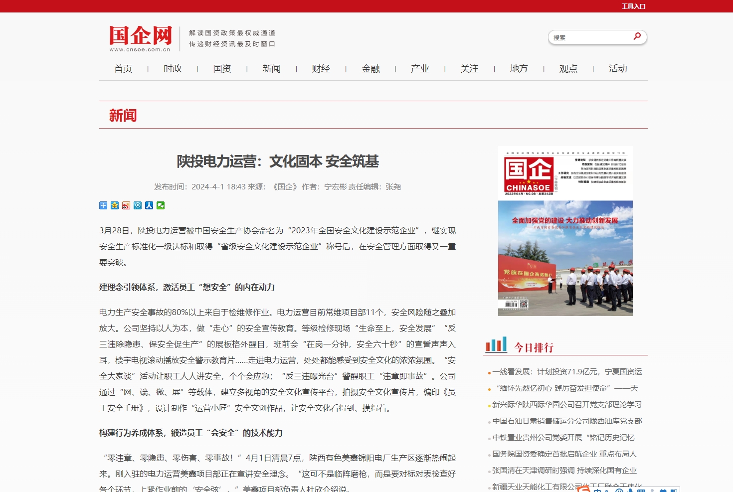 3月28日,陜投電力運(yùn)營(yíng)被中國(guó)安全生產(chǎn)協(xié)會(huì)命名為“2023年全國(guó)安全文化建設(shè)示范企業(yè)”,繼實(shí)現(xiàn)安全生產(chǎn)標(biāo)準(zhǔn)化一級(jí)達(dá)標(biāo)和取得“省級(jí)安全文化建設(shè)示范企業(yè)”稱號(hào)后,在安全管理方面取得又一重要突破。