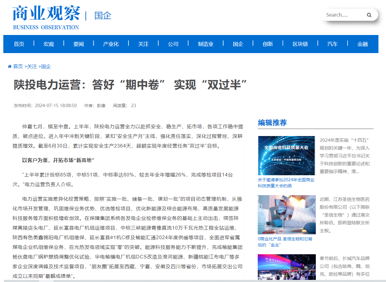 “上半年累計(jì)投標(biāo)85項(xiàng),中標(biāo)51項(xiàng),中標(biāo)率達(dá)60%,較去年全年增幅26%,完成等檢項(xiàng)目14臺(tái)次?!彪娏\(yùn)營(yíng)負(fù)責(zé)人介紹。電力運(yùn)營(yíng)實(shí)施差異化經(jīng)營(yíng)策略,按照“實(shí)施一批、儲(chǔ)備一批、謀劃一批”的項(xiàng)目動(dòng)態(tài)管理機(jī)制,從強(qiáng)化市場(chǎng)開(kāi)發(fā)管理、鞏固維保業(yè)務(wù)優(yōu)勢(shì)、優(yōu)選等檢項(xiàng)目、優(yōu)化新能源及綜合能源布局、高質(zhì)量發(fā)展能源科技服務(wù)等方面積極增收創(chuàng)效。在保障集團(tuán)系統(tǒng)各發(fā)電企業(yè)檢修維保業(yè)務(wù)的基礎(chǔ)上主動(dòng)出擊,續(xù)簽陜煤黃陵店頭電廠、延長(zhǎng)富縣電廠機(jī)組運(yùn)維項(xiàng)目,中標(biāo)三峽能源青豫直流10萬(wàn)千瓦光熱工程全站運(yùn)維、陜西有色美鑫錦陽(yáng)電廠機(jī)組維保、延長(zhǎng)富縣#1機(jī)C修及榆能匯通2024年度供暖等項(xiàng)目,全面進(jìn)軍省屬煤電企業(yè)機(jī)組維保業(yè)務(wù),在光熱發(fā)電領(lǐng)域?qū)崿F(xiàn)“零”的突破。能源科技服務(wù)能力不斷提升,完成榆能集團(tuán)楊伙盤(pán)電廠鍋爐燃燒調(diào)整優(yōu)化試驗(yàn)、華電榆橫電廠機(jī)組DCS改造及淮河能源、新疆皖能江布電廠等多家企業(yè)深度調(diào)峰及技術(shù)監(jiān)督項(xiàng)目,“朋友圈”拓展至西藏、寧夏、安徽及四川等省份,市場(chǎng)拓展交出公司成立以來(lái)同期“最靚成績(jī)單”。