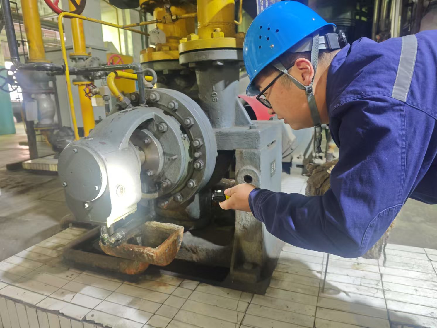 “羅劍布置場地、準(zhǔn)備工器具;晏源負責(zé)‘兩交底’?!闭矝苡垃F(xiàn)場布置任務(wù)。工作票辦理、泵體拆卸、軸承更換……一場搶修大戰(zhàn)隨即展開。除夕的渭北大地朔風(fēng)凜冽、寒氣陣陣,但大家一點都沒在意,干得熱火朝天。連接對輪、試轉(zhuǎn)運行……設(shè)備恢復(fù)正常時,時間已是深夜。