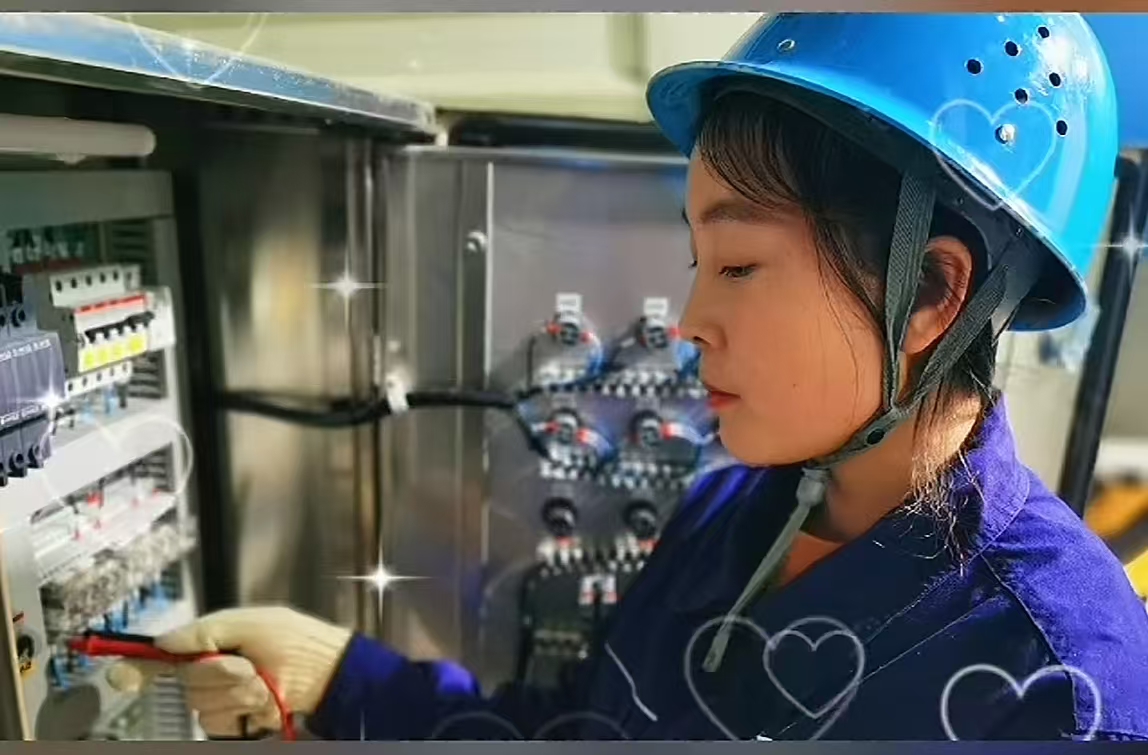 “霞子”真名殷榮霞,趙石畔項目部電氣專業(yè)檢修工,一個地道的陜北姑娘,1米6左右,梳個大辮子,大眼睛,兩腮略帶一點風沙紅,膚色看著很健康,用含蓄一點的詞來表達靚麗程度,就是“穿著工裝也不失色”。女人愛美的天性,沒有讓她因為在轟隆的機房內工作,要接觸灰塵、要流汗而停止,“唇彩、眼影、畫眉……”時不時還會閃亮登場,伴隨她走進廠房一起工作,就像名字中的“霞”字一樣,不失靚麗。