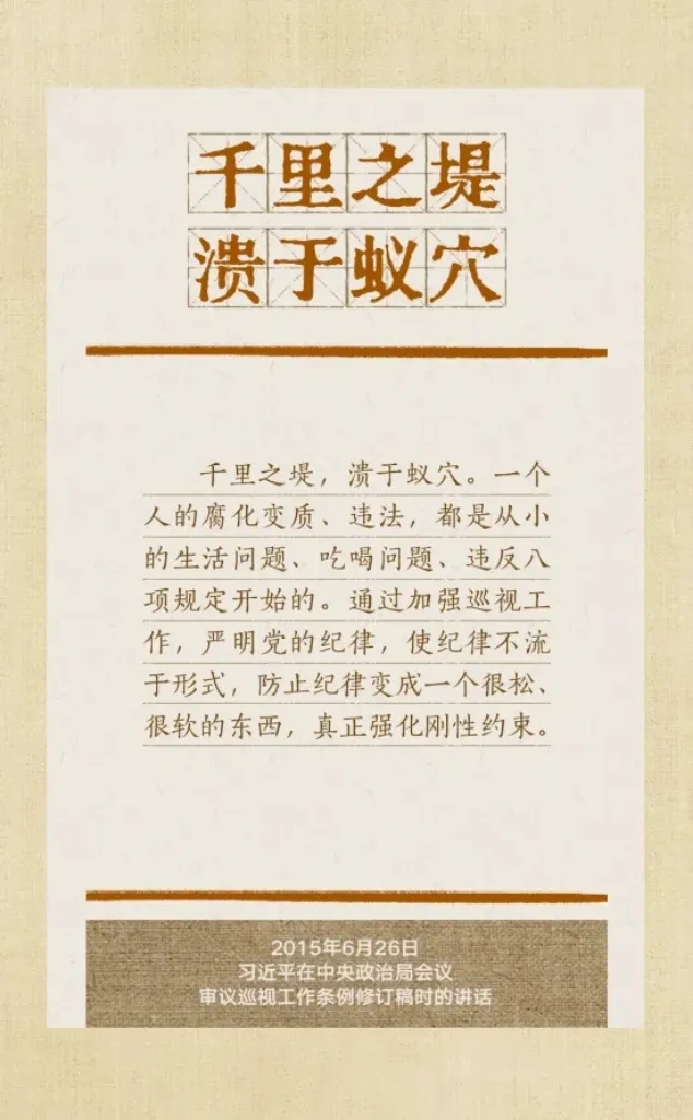 黨的十八大以來,習(xí)近平總書記多次就抓好黨的作風(fēng)建設(shè)、貫徹落實(shí)中央八項(xiàng)規(guī)定精神發(fā)表重要講話,作出重要批示,提出明確要求?!皼]有規(guī)矩,不成方圓”、“己不正,焉能正人”、“盡小者大,慎微者著”······總書記引用的這些古語耐人尋味。