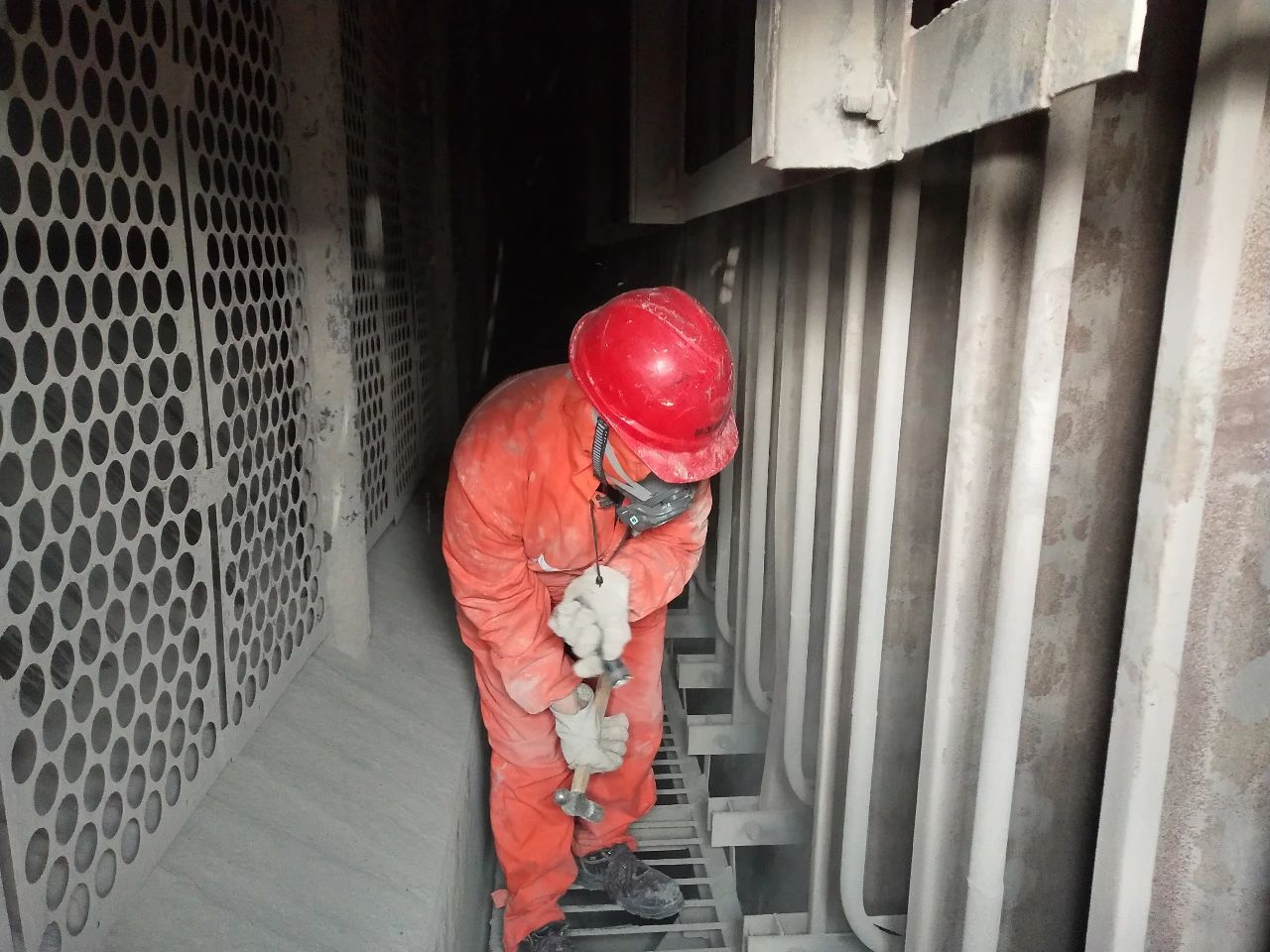 3月10日,商洛項目部機務隊鍋爐班在#2爐電除塵內進行檢查
