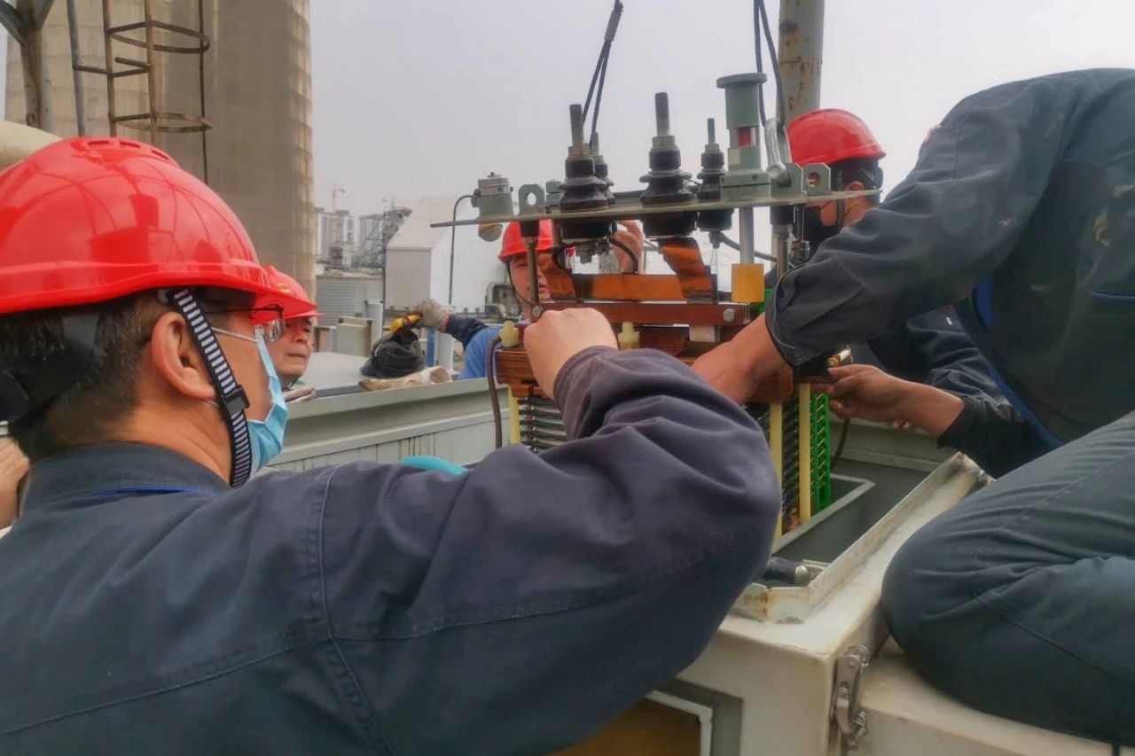 4月6日,控制班開始了#5電除塵222電場(chǎng)變壓器的吊芯檢查。經(jīng)過(guò)線圈檢查、油色譜分析及耐壓試驗(yàn)等工作,發(fā)現(xiàn)變壓器內(nèi)部存在著嚴(yán)重缺陷。班組立刻組織人力、準(zhǔn)備備品,僅用時(shí)2天就完成了更換工作。